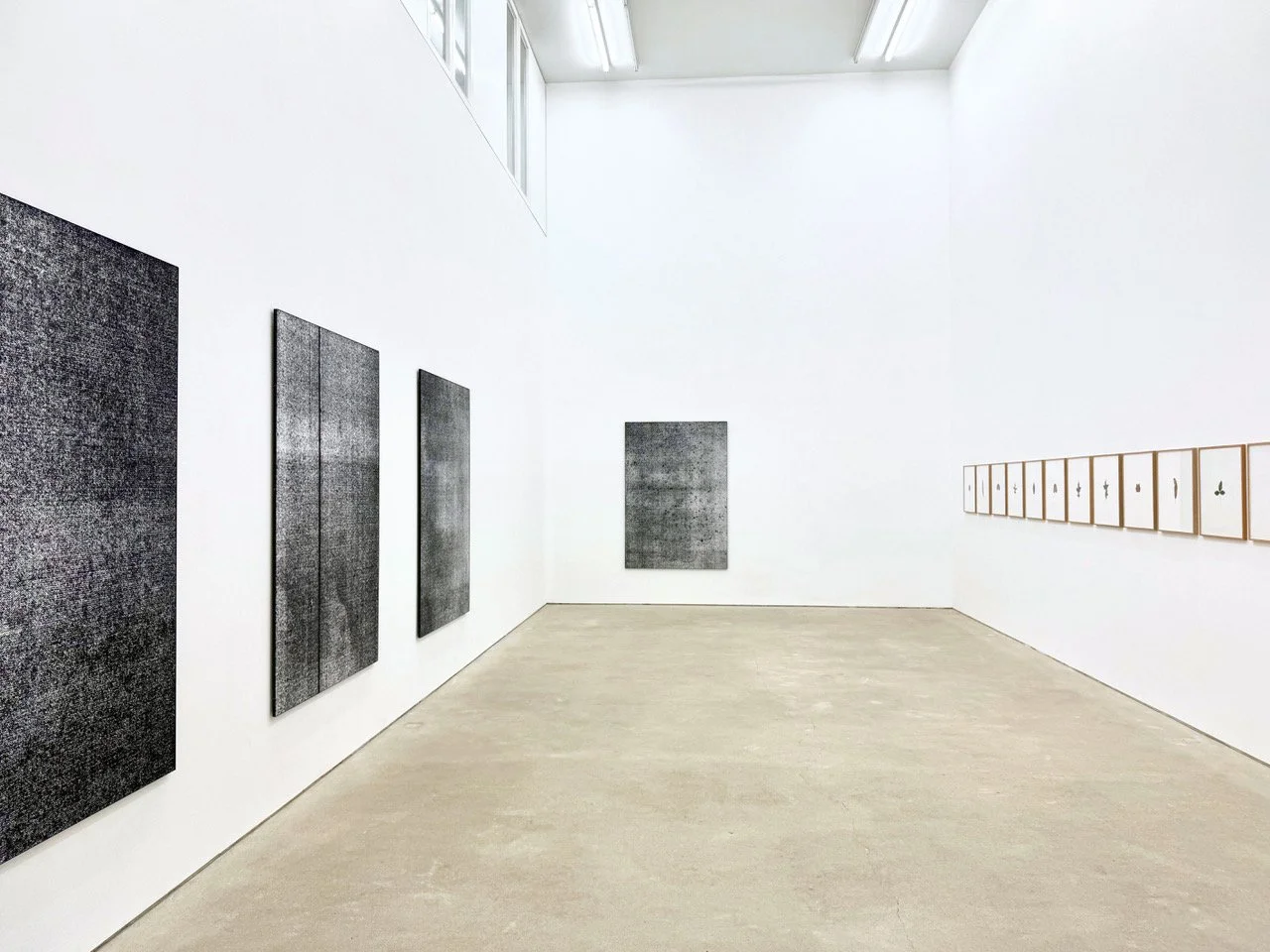 Ausgangspunkt der großen Bilder, Pigmentdrucke im Format 180 x 125-270 cm, sind Abschnitte, Reste, Proben, die im Atelier beiseite gelegt wurden, um sie irgendwann zu verwerten.